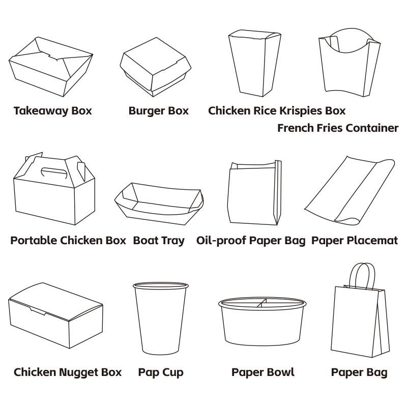 Our products cover a variety of food packaging containers, such as paper bowls, take away boxes, paper cups, lunch boxes, paper bags, paper plates, paper trays and sugarcane pulp food boxes, as well as food packaging accessories. Our best-selling products include: paper bowls, paper food boxes, ice Cream Cups, Fried Chicken Boxes,Hamburger Boxesand fruit boxes .