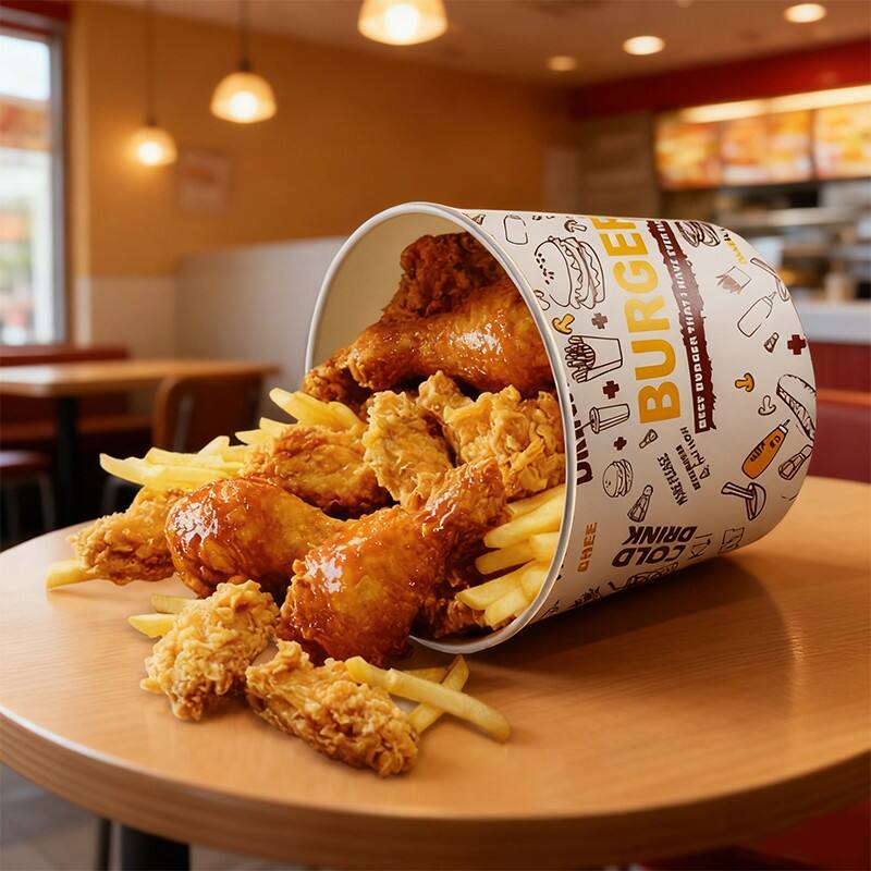 As a professional manufacturer with an in-house factory, SenAng Chicken Buckets boast excellent printing, oil resistance and leak resistance. Crafted from premium high-grammage white cardboard with a PE coating, they maintain structural rigidity and resist deformation even when holding fried high-temperature food.