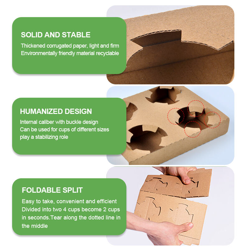 We manufacture cup trays in standard configurations, with the option for custom sizes and designs. SenAng factory holds large inventories for fast shipment, and customization services are available to highlight your brand with printing or embossing. All products are made from sustainably sourced materials and certified for safe use. Free samples are available.