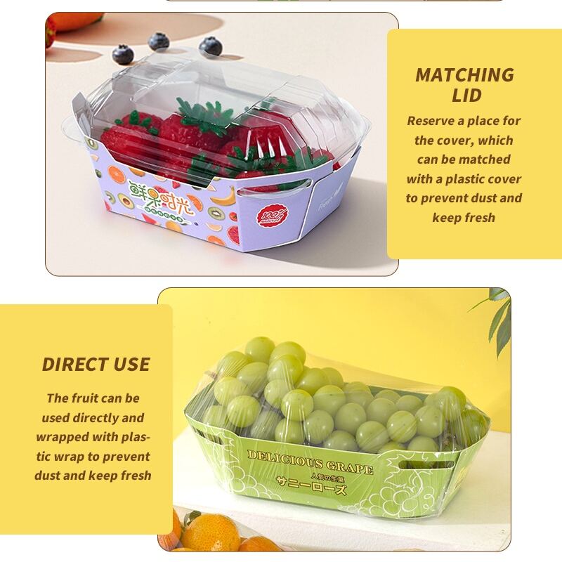 Factory-Direct Custom Fruit Paper Trays: Food-grade recyclable material , custom ventilation perforations, leak-proof & anti-deformation. Extends fruit shelf life by 3-5 days, ideal for bulk fresh produce (grapes/berries/organic fruits) shipments.