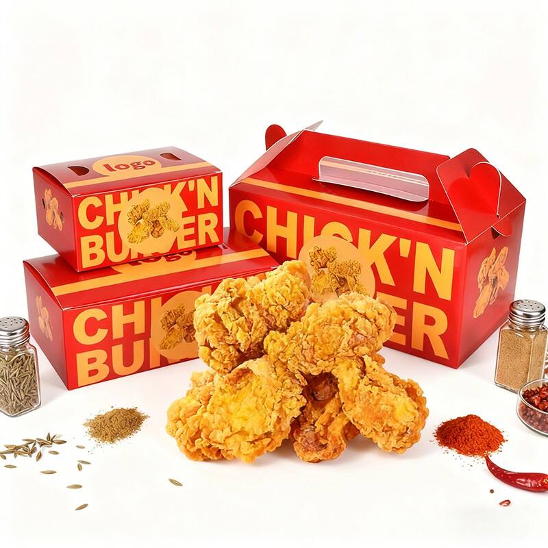 Our fast food boxes series covers a full range of products such as lunch box,fried chicken boxes, hamburger boxes,and fries boxes, featuring fully customizable sizes and vibrant printing. Crafted from high-quality coated paper,these products boast excellent oil-proof and leak-proof performance. Contact us now for quotes and free samples!