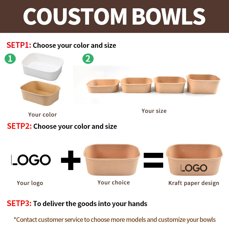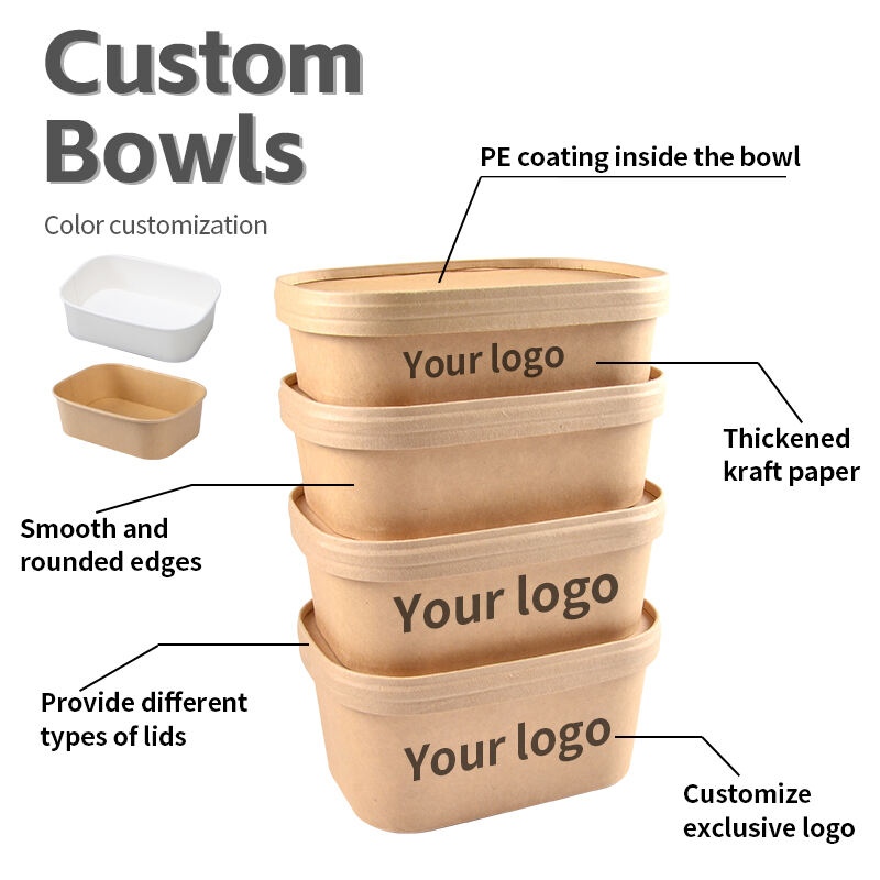 SenAng supply rectangular & square paper bowls, perfect for versatile food packaging. With waterproof and oil-proof features, they are ideal for take-away meals, salads, pasta, and more. We also offer custom logo printing to enhance your brand image! Contact us for a free quote!