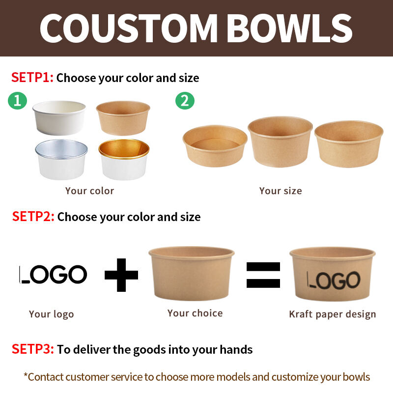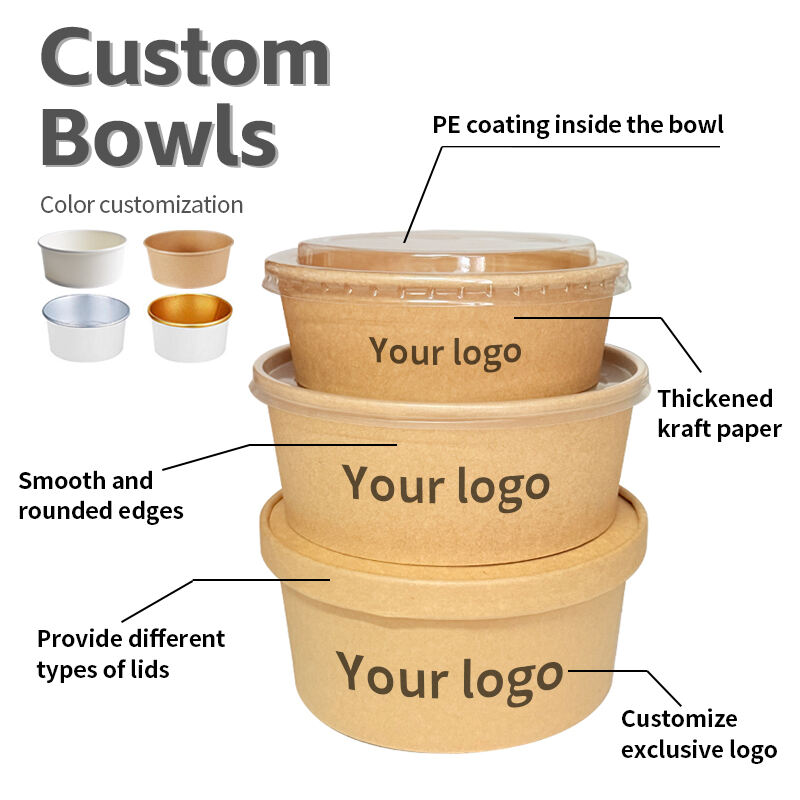 SenAng supply disposable paper bowls, kraft paper bowls, paper salad bowls, suitable for food packaging. We can also custom print logo to help display your brand!
