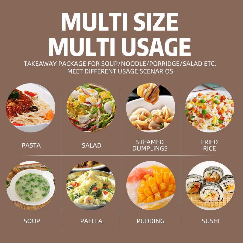 SenAng soup bowls are specially made to prevent leakage, suitable for both hot and cold soups. Strong, waterproof, and eco-friendly, they are widely used in restaurants, food stalls, and delivery services. Custom logo & printing available! Contact us for a free quote!